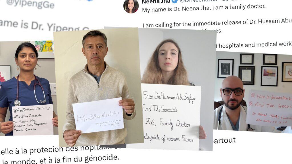 Le 1er janvier 2025, Zoé, médecin généraliste dans l’ouest de la France, poste une photo d’elle sur X tenant une pancarte sur laquelle on peut lire : #FreeDrHussamAbuSafiya, #EndTheGenocide. Sous sa photo, elle demande la libération immédiate du docteur Hussam Abu Safiya et la protection des hôpitaux et des soignants à Gaza. A l'heure où nous écrivons ces lignes, sa publication a été vue plusieurs centaines de milliers de fois. Celle de son confrère canadien qu'elle a également repartagée en est déjà à cinq millions de vues. De part et d'autre du monde, de nombreux professionnels de la santé relaient leur solidarité avec le directeur de l’hôpital Kamal Adwan, sous le feu de l'armée israélienne depuis plusieurs mois.